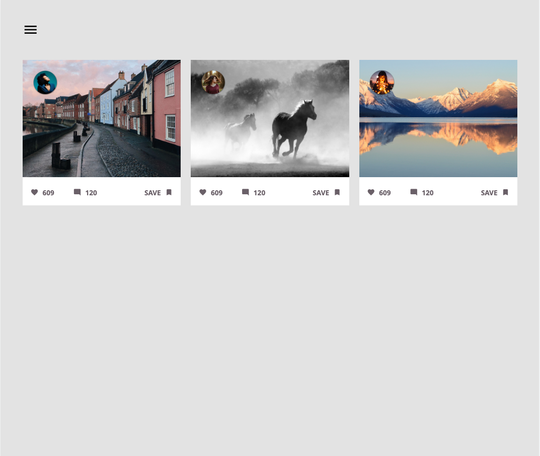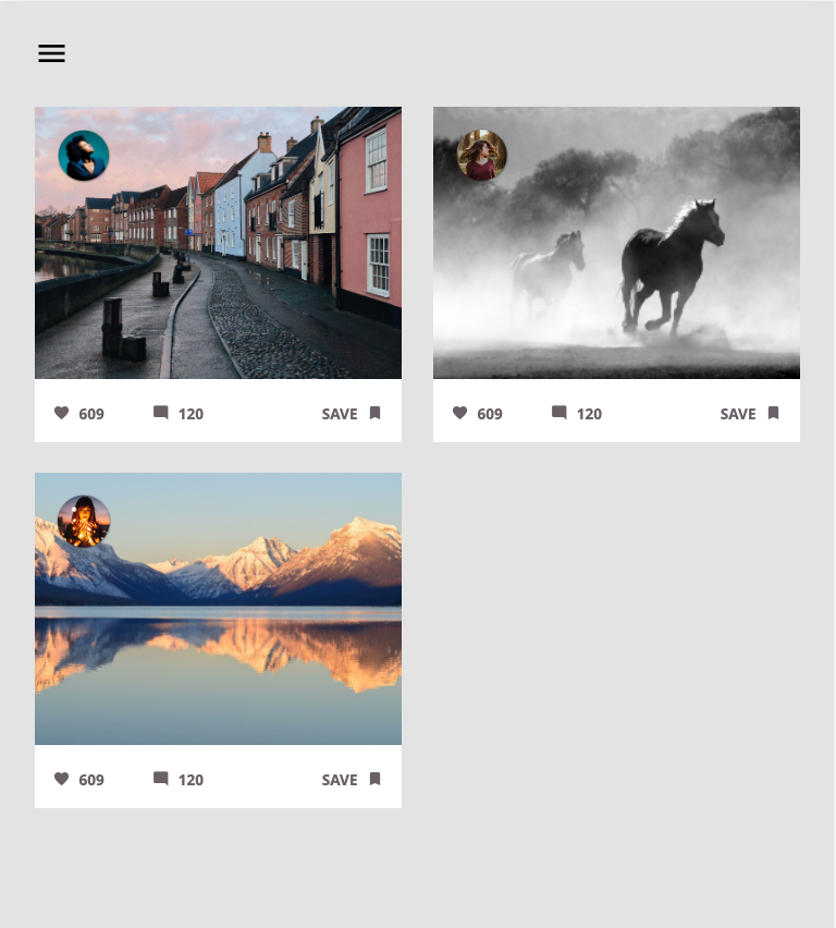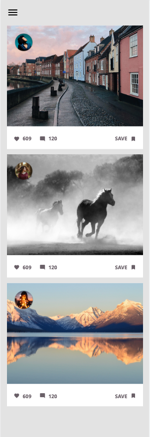 Övningsuppgift i kursen frontend på Brobygrafiska. Här fick jag lära mig att skapa moduler med bild, profilbild och 'knappar' för kommentarer m.m. Layout gjordes responsiv för desktop, tablet och mobile. Byggd 'mobile first'.