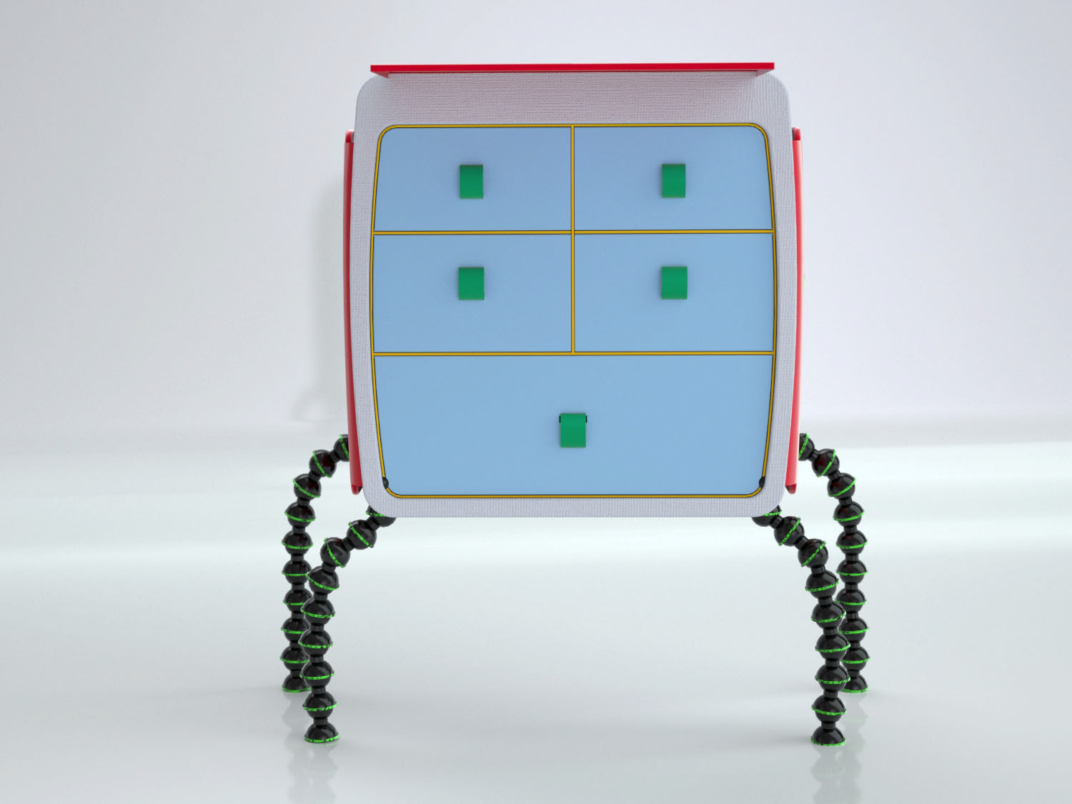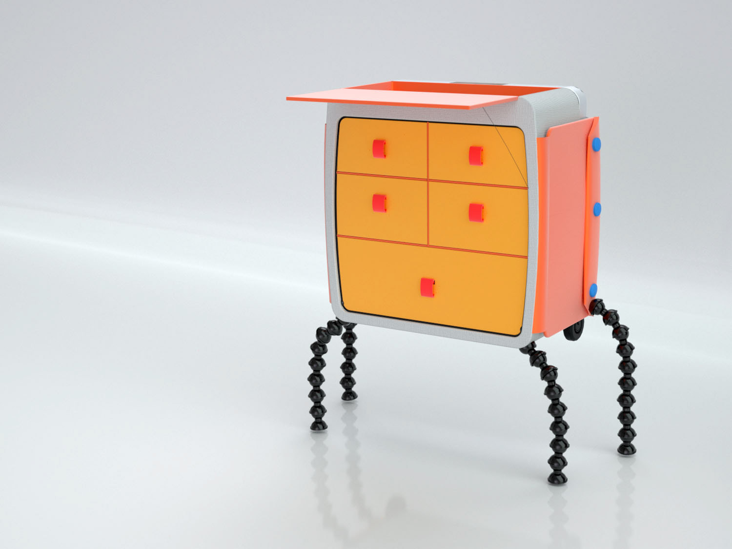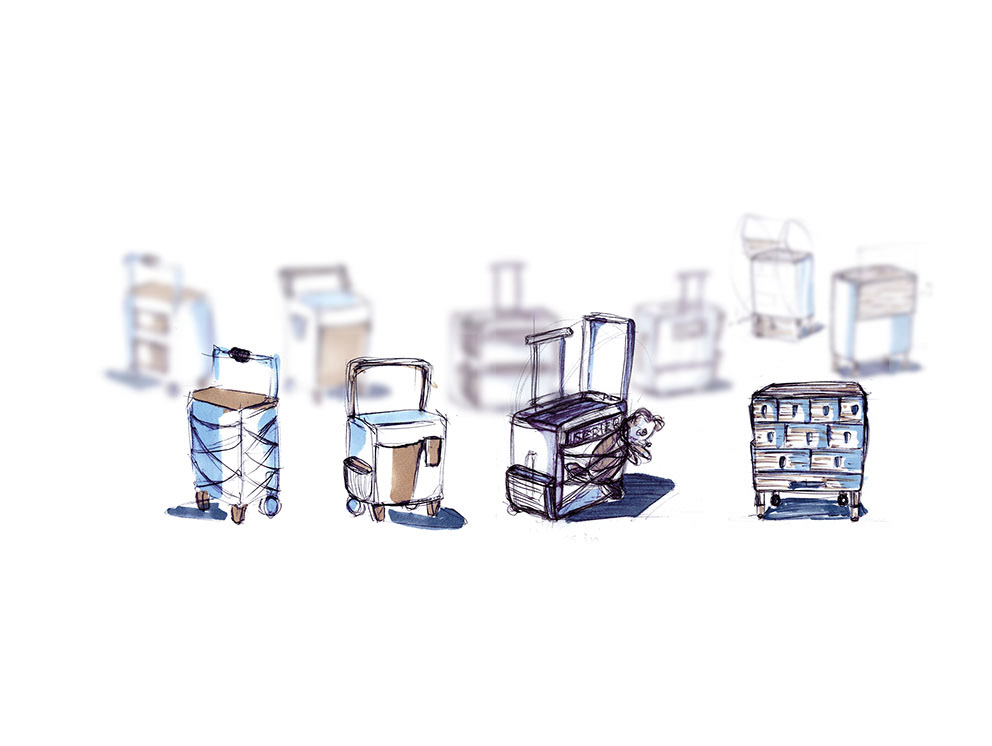 For children with divorced parents. Bedside table storing their most beloved belongings turns into travel bag. 3D: Alias Automotive + Maxwell Rendering Studio.